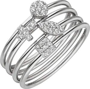 Damen Ring 4-teilig aus 925 Silber mit 30 Zirkonia Kreis Kreuz spitzoval Quadrat, Ringgröße:Innenumfang 60mm ~ Ø19.1mm