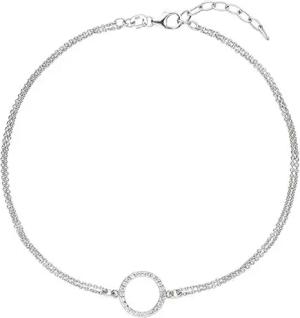 Fußkettchen Fußkette mit Kreis 925 Silber 2-reihig 24 Zirkonia 26cm Fußschmuck