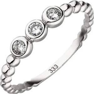 Kugel-Ring Damenring 3 Zirkonia weiß 333 Gold Weißgold Fingerring 2,2mm breit, Ringgröße:Innenumfang 52mm ~ Ø16.6mm