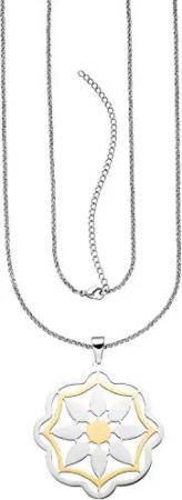 Lange Halskette Erbskette mit Anhänger Blume aus Edelstahl bicolor 70-80cm