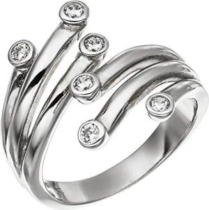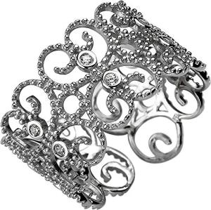 Offener Ring aus 925 Silber mit 10 weißen Zirkonia Fingerring mit Ornament, Ringgröße:Innenumfang 52mm ~ Ø16.6mm