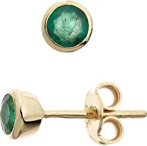 Ohrringe Ohrstecker Stecker mit Smaragd grün 333 Gold Gelbgold schlicht
