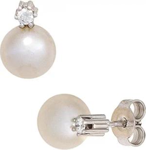 Paar Ohrstecker mit Süßwasser Perlen & 2 Brillanten 585 Gold Weißgold Damen