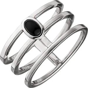 Ring Damenring 3-reihig breit mit ovalem Onyx, 925 Silber Fingerschmuck, Ringgröße:Innenumfang 54mm ~ Ø17.2mm
