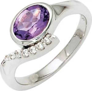 Ring Damenring für zwei Finger mit Amethyst-Navette Zirkonia, 333 Gold Weißgold, Ringgröße:Innenumfang 52mm ~ Ø16.6mm