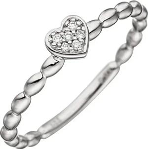 Ring Damenring Herz mit 6 Diamanten Brillanten 585 Gold Weißgold Fingerring, Ringgröße:Innenumfang 56mm ~ Ø17.8mm