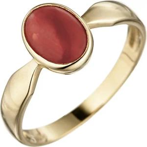 Ring Damenring mit Koralle rot oval 333 Gold Gelbgold Goldring Fingerschmuck, Ringgröße:Innenumfang 52mm ~ Ø16.6mm