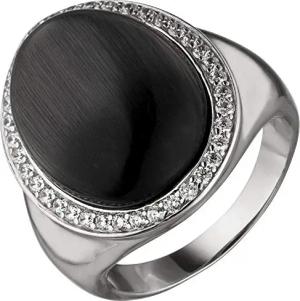 Ring Damenring mit Mondstein-Imitation schwarz mit Wölbung 38 Zirkonia 925 Silber, Ringgröße:Innenumfang 52mm ~ Ø16.6mm
