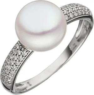 Ring Damenring mit Süßwasser Perle & Zirkonia 333 Gold Weißgold Perlenring Damen, Ringgröße:Innenumfang 60mm ~ Ø19.1mm