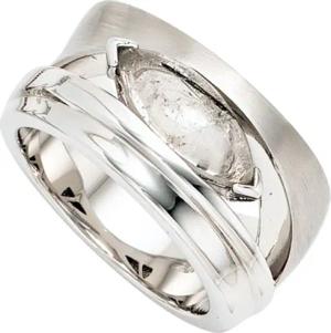 Partner Ring Damenring mit 3 Zirkonia weiß 925 Silber Silberring teilmattiert, Ringgröße:Innenumfang 58mm ~ Ø18.5mm