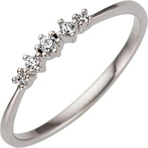 Schmaler Ring aus 585 Gold Weißgold mit 5 Diamanten Brillanten 0,08ct., Ringgröße:Innenumfang 58mm ~ Ø18.5mm