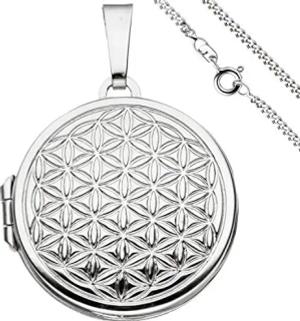Schmuck-Set, Medaillon für 2 Fotos Blume des Lebens Panzerkette 925 Silber, 60cm