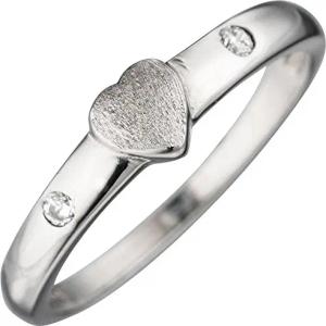 Silberring Herz Herzchen mit weißen Zirkonia 925 Silber teilmatt Kinder, Ringgröße:Innenumfang 46mm ~ Ø14.6mm