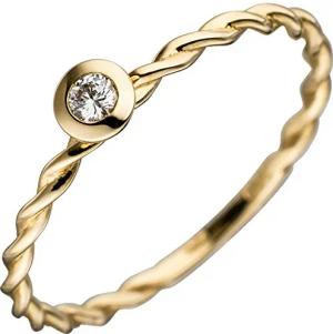 Solitär Ring Diamant Brillant 585 Gold Gelbgold gedreht Fingerring, Ringgröße:Innenumfang 60mm ~ Ø19.1mm