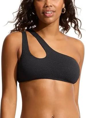 Damen Bandeau One Shoulder Top Badeanzug Bikini, Sea Dive Black, 40