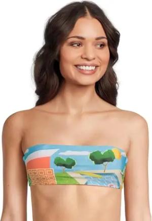 Damen Bandeau Tube Bikini Top Badeanzug, Sunset Turquoise, 36