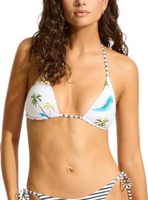 Damen Slide Triangle Top Bikini, Isla Palm White, 4
