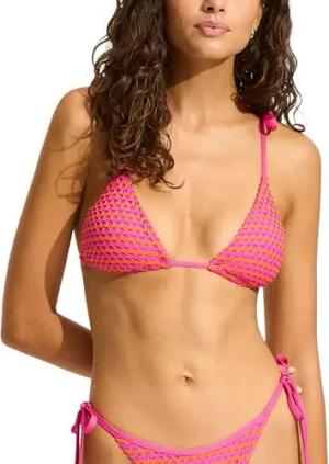 Damen Slide Triangle Top Bikini, Netz-Effekt, Hot Pink, 38