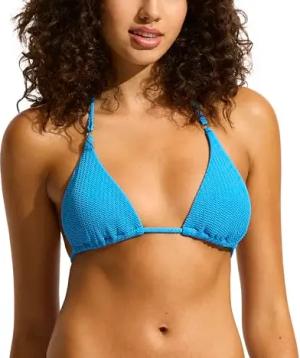 Damen Slide Triangle Top Bikini, Azurblau mit Netz-Effekt, 36
