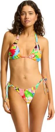 Damen Slide Triangle Top Swimsuit Bikini, Sea Dive Snapdragon, 42