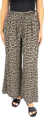 Damen Leo Musselin Hose - locker & lässig, One Size, Animal Print - Dani (Khaki)