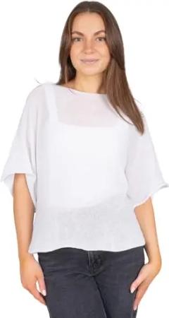 Damen Musselin Bluse aus 100% Baumwolle mit individueller Kette, Leicht & Locker, One Size - Valentina (weiß)