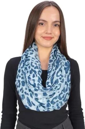 Damen Loop Schal – Hochwertiger Viskose-Seide Mix mit Animal-Print | Dünn, Leicht, Weich - Kiwi (M272 Blau)