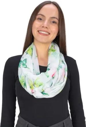 Damen Loop Schal mit Aquarell Schmetterlingsmuster, Weich, Leicht & Dünn aus Viskose-Seide - Emily (M241 Grün)
