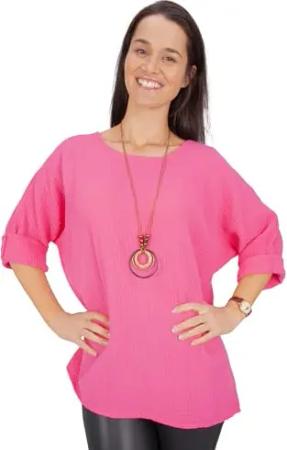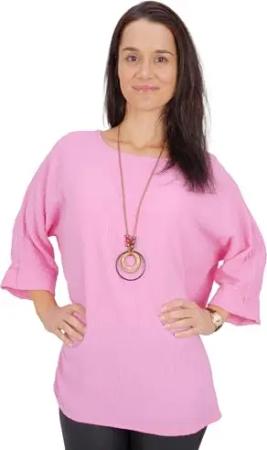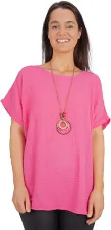 Damen Musselin Bluse Shirt aus 100% Baumwolle mit individueller Kette, Leicht & Locker, One Size - Giorgia (pink)