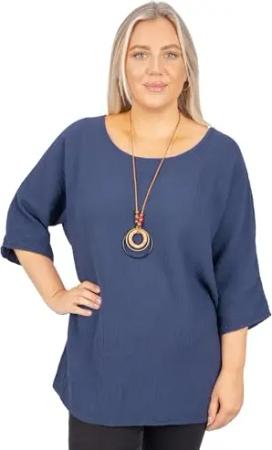 Damen Musselin Bluse Shirt, Oversized, leicht luftig + individ. Kette - Vanessa (Dunkelblau)