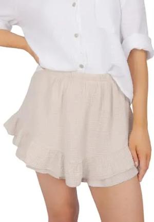 Damen Musselin Hosen Rock kurz mit Rüschen, 100% Baumwolle luftig - Lorena (Beige)