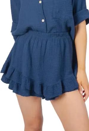 Damen Musselin Hosen Rock kurz mit Rüschen, 100% Baumwolle luftig - Lorena (Dunkelblau)