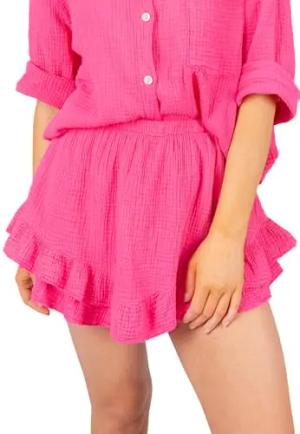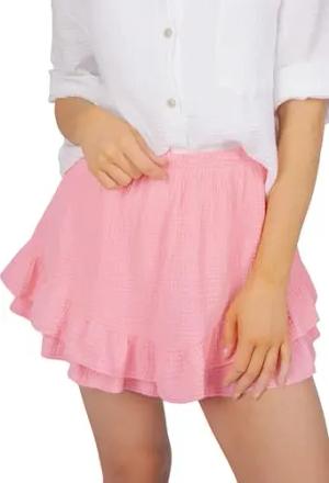Damen Musselin Hosen Rock kurz mit Rüschen, 100% Baumwolle luftig - Lorena (Pink)