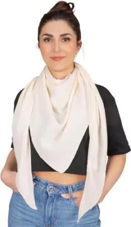 Damen Musselin Schal in Dreieck Form, aus 100% Baumwolle leicht & weich, viele Farben - Luisa (Creme)