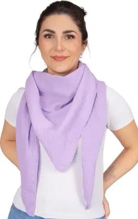 Damen Musselin Schal in Dreieck Form, aus 100% Baumwolle leicht & weich, viele Farben - Luisa (Flieder)