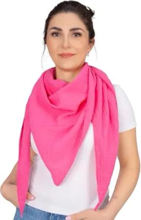 Damen Musselin Schal in Dreieck Form, aus 100% Baumwolle leicht & weich, viele Farben - Luisa (Pink)