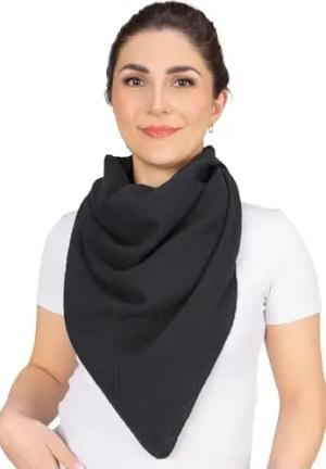 Damen Musselin Schal in Dreieck Form, aus 100% Baumwolle leicht & weich, viele Farben - Luisa (Schwarz)