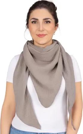 Damen Musselin Schal in Dreieck Form, aus 100% Baumwolle leicht & weich, viele Farben - Luisa (Taupe)