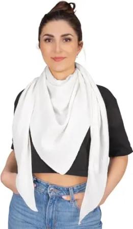 Damen Musselin Schal in Dreieck Form, aus 100% Baumwolle leicht & weich, viele Farben - Luisa (Weiß)