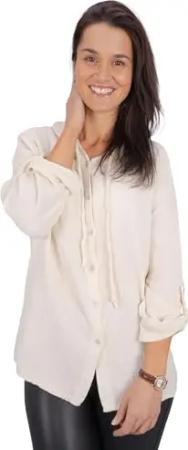 Damen Musselinbluse aus 100% Baumwolle, Oversized, Halbarm & mit Kapuze - Camila (Creme, L/XL)