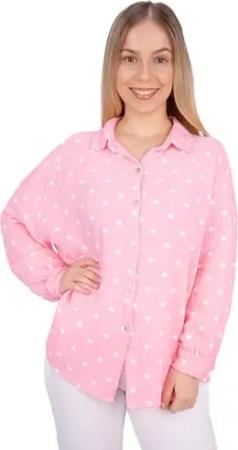 Damen Musselinbluse mit Herz Herzen aus 100% Baumwolle Oversized - Liya (Light pink weiß)
