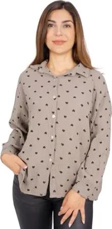 Damen Musselinbluse mit Herz Herzen aus 100% Baumwolle Oversized - Liya (Taupe schwarz)