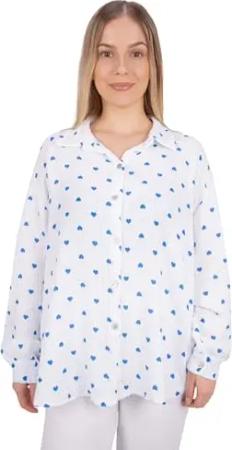 Damen Musselinbluse mit Herz Herzen aus 100% Baumwolle Oversized - Liya (weiß blau)