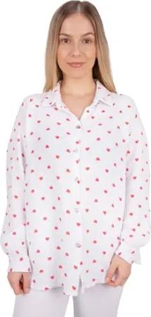 Damen Musselinbluse mit Herz Herzen aus 100% Baumwolle Oversized - Liya (weiß rot)