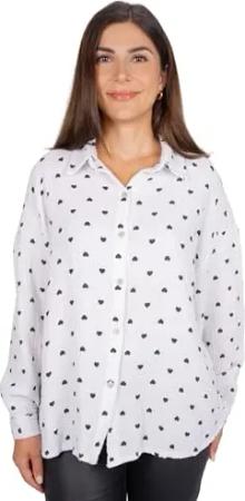 Damen Musselinbluse mit Herz Herzen aus 100% Baumwolle Oversized - Liya (weiß schwarz)