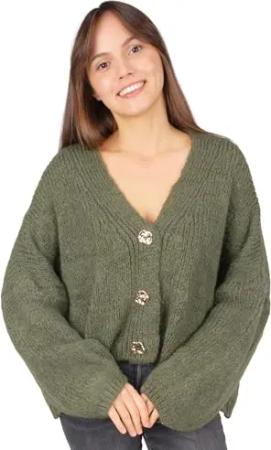 Damen Strickjacke Oversize Cardigan mit Knöpfen - JoJo (Khaki)