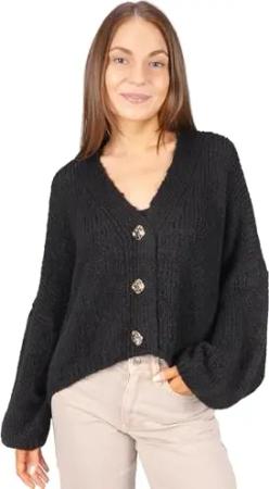 Damen Strickjacke Oversize Cardigan mit Knöpfen - JoJo (schwarz)