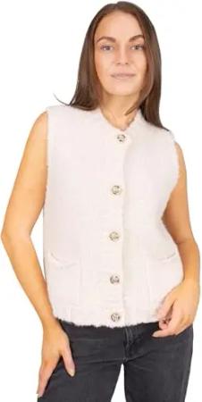 Damen Strickweste – Klassische Weste ohne Ärmel, Strick Weste elegant & vielseitig kombinierbar – Wendy (Creme)
