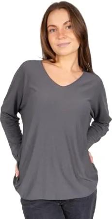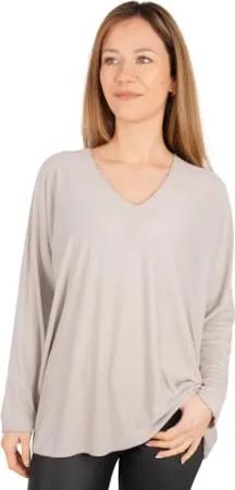 Elegantes Damen Langarm Shirt mit V-Ausschnitt | Leicht & Atmungsaktiv | Vielseitig kombinierbar | One Size - Maya (Viskose-Mischung, Grau)