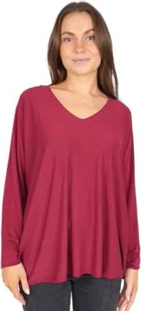 Elegantes Damen Langarm Shirt mit V-Ausschnitt | Leicht & Atmungsaktiv | Vielseitig kombinierbar | One Size - Maya (Viskose-Mischung, Bordeaux)